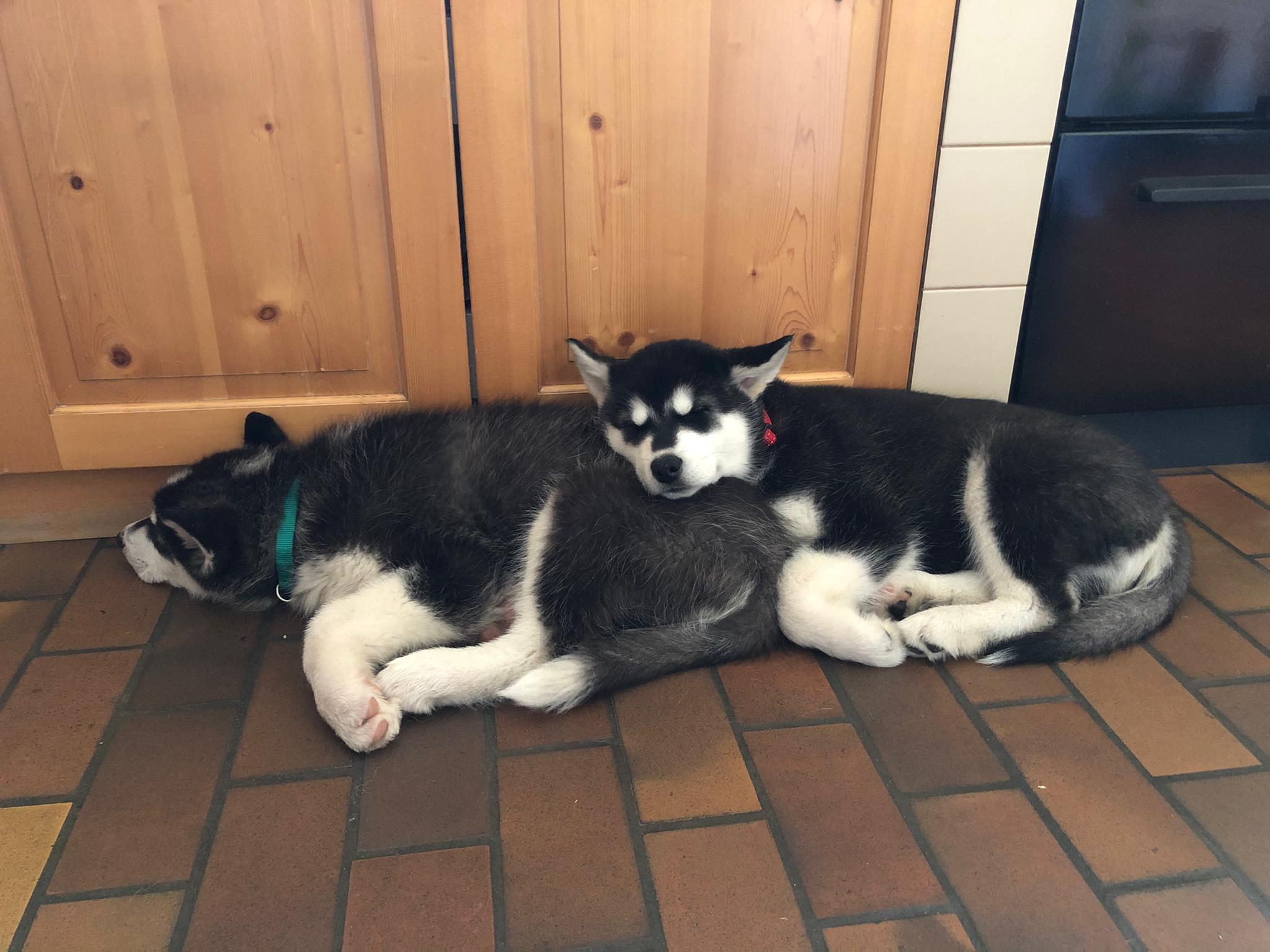 Der süße Ares hatte die weiteste Reise, die ihn am 24.10.20 bis in die Schweiz führte. Dort lebt er jetzt mit seiner neuen Familie, sowie mit einem erwachsenem Husky-Opa und einem weiteren MiniMute Ayko, der nur 2 Wochen älter als er und am selben Tag mit ihm umgezogen ist. Die Beiden haben ihre neue Familie ab jetzt voll im Griff. Wir wünschen euch alles Liebe 💖